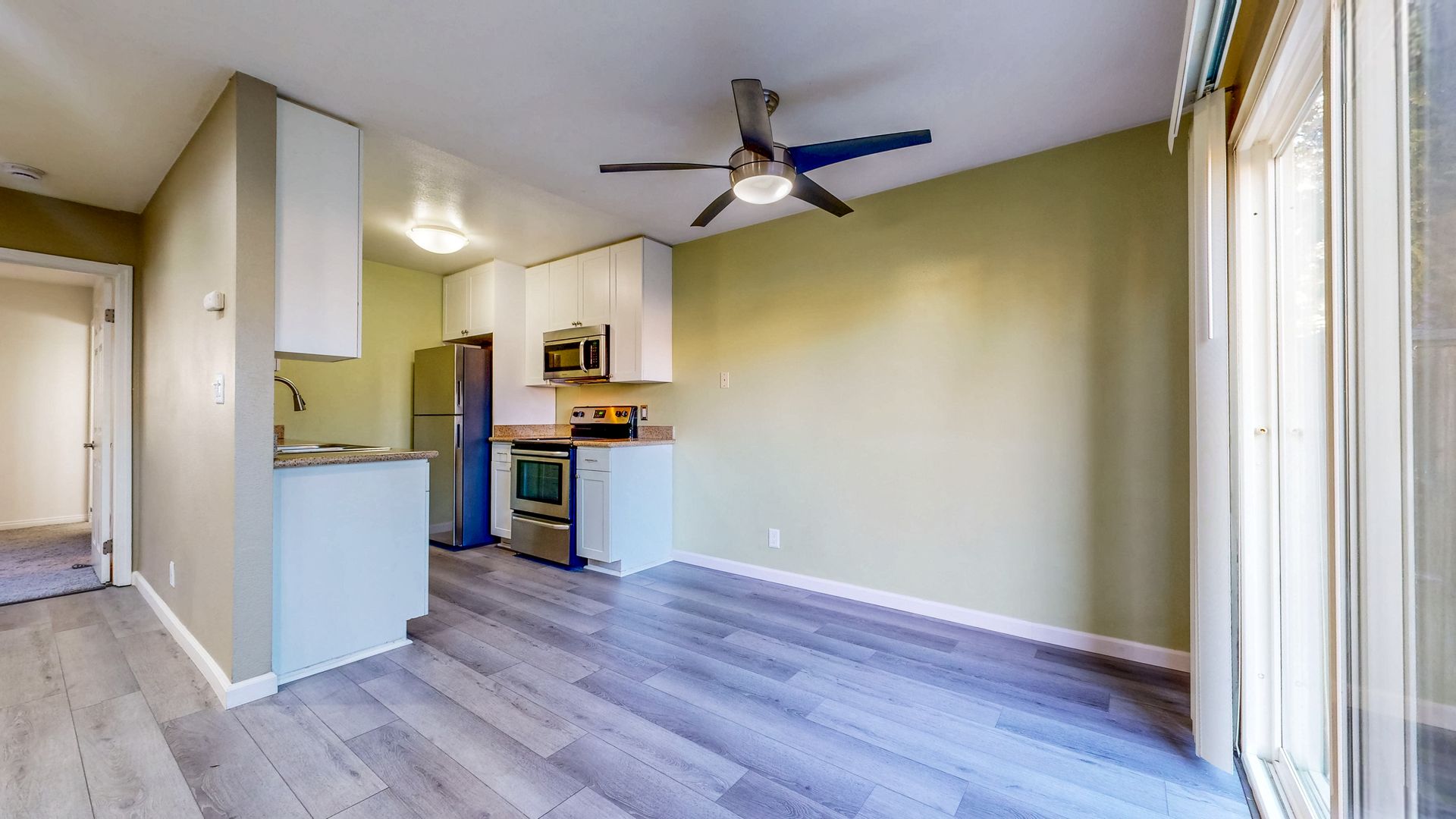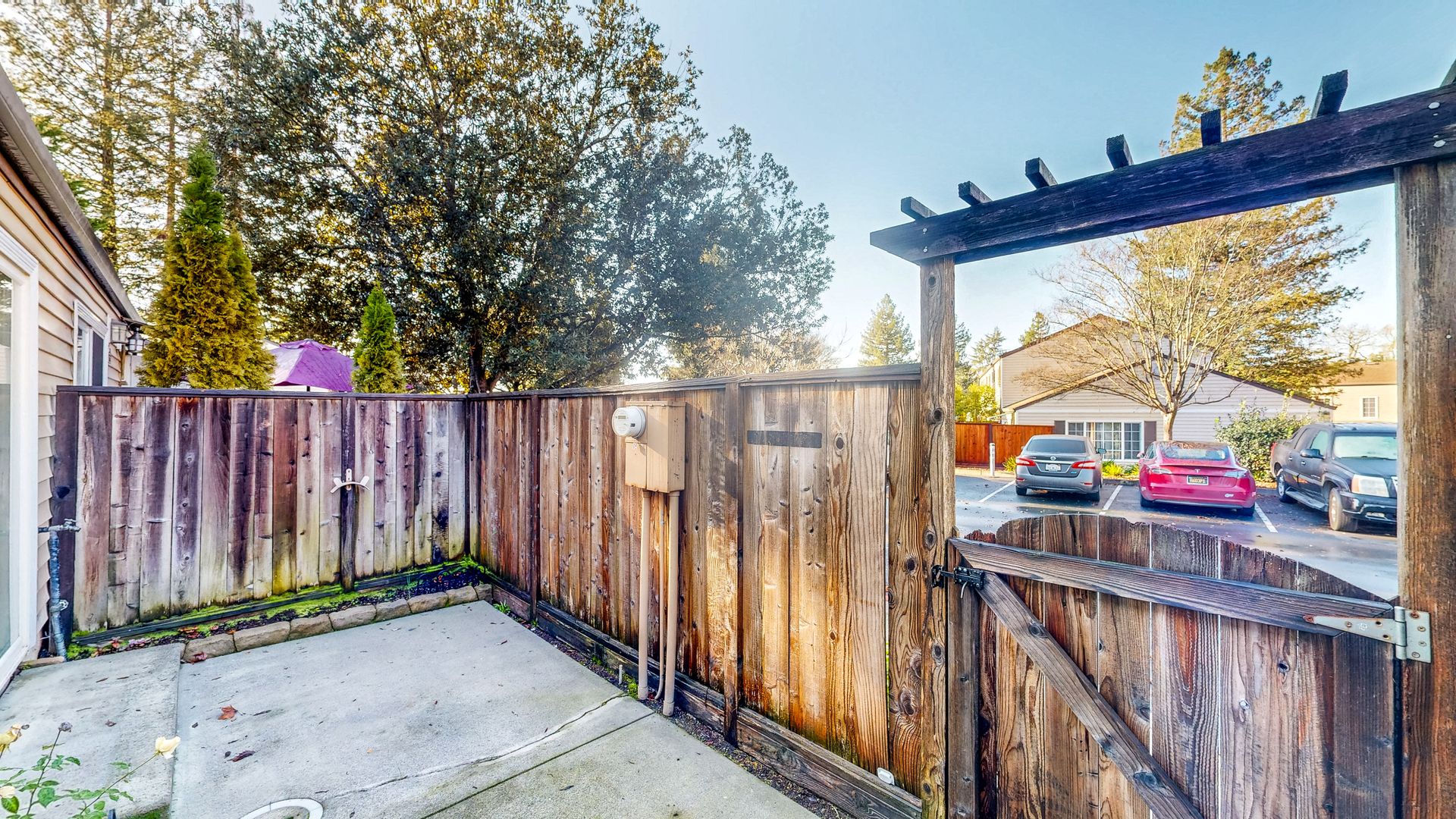 Cozy 1 bedroom 1 bath end unit condo with 1 car garage and private patio located next to Peterson Lane Park!