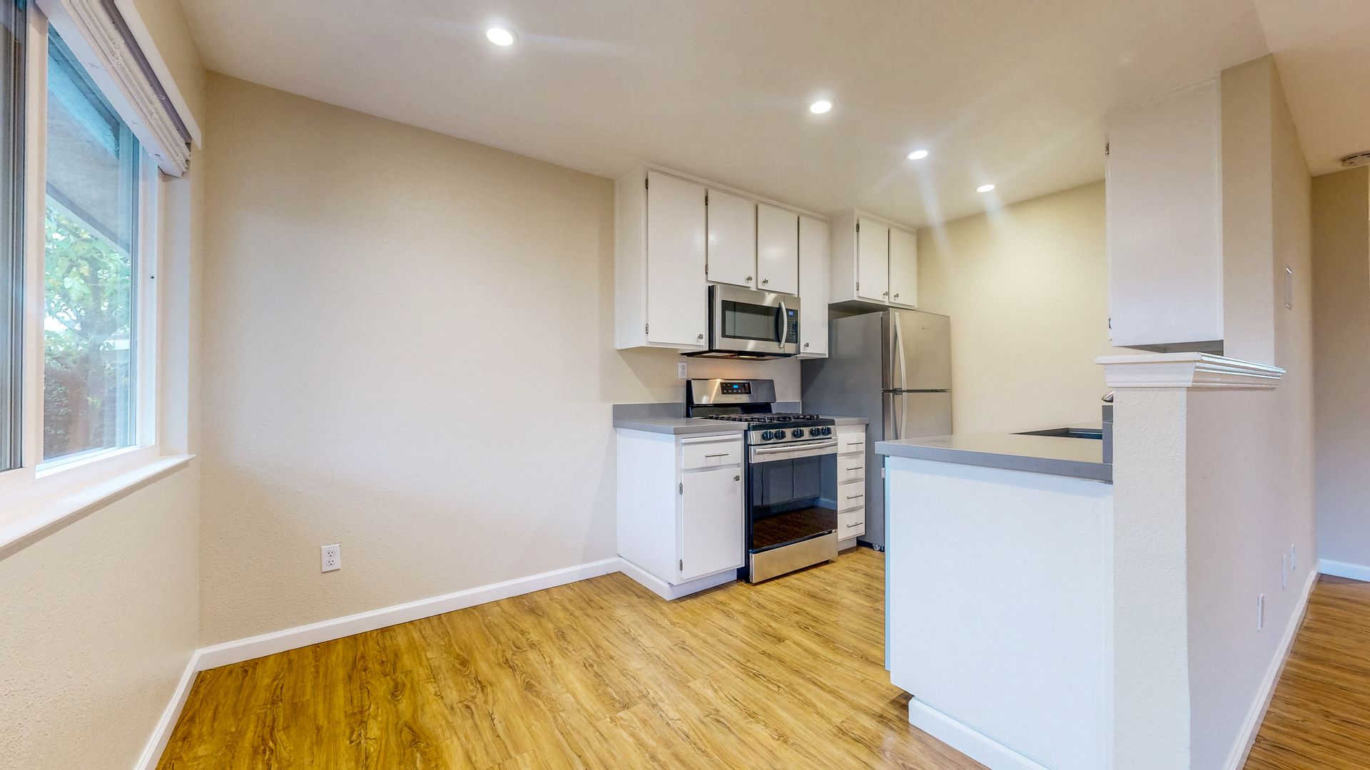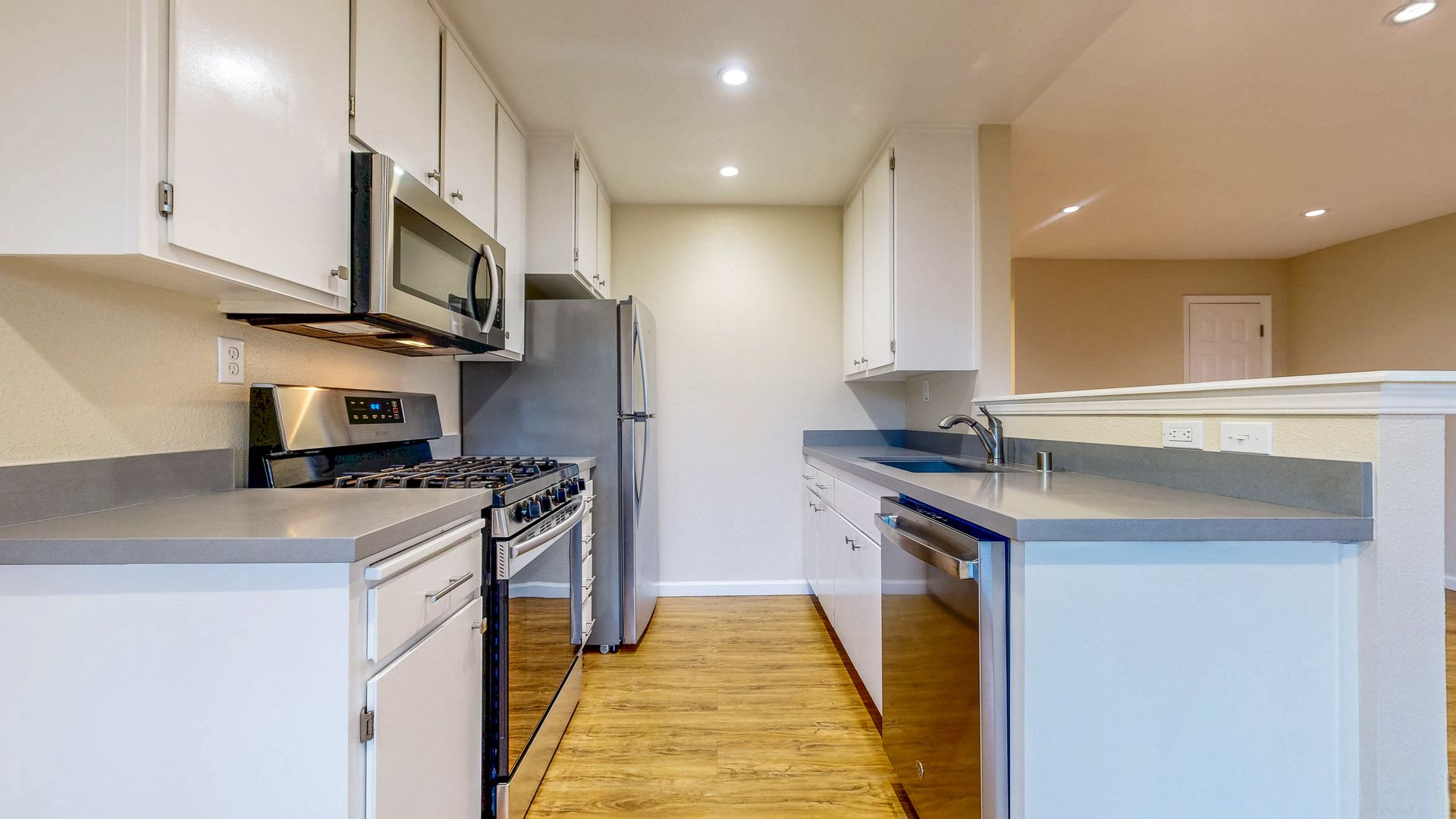 -Stainless Steel Appliances : Dishwasher, Stove, Microwave, and Refrigerator