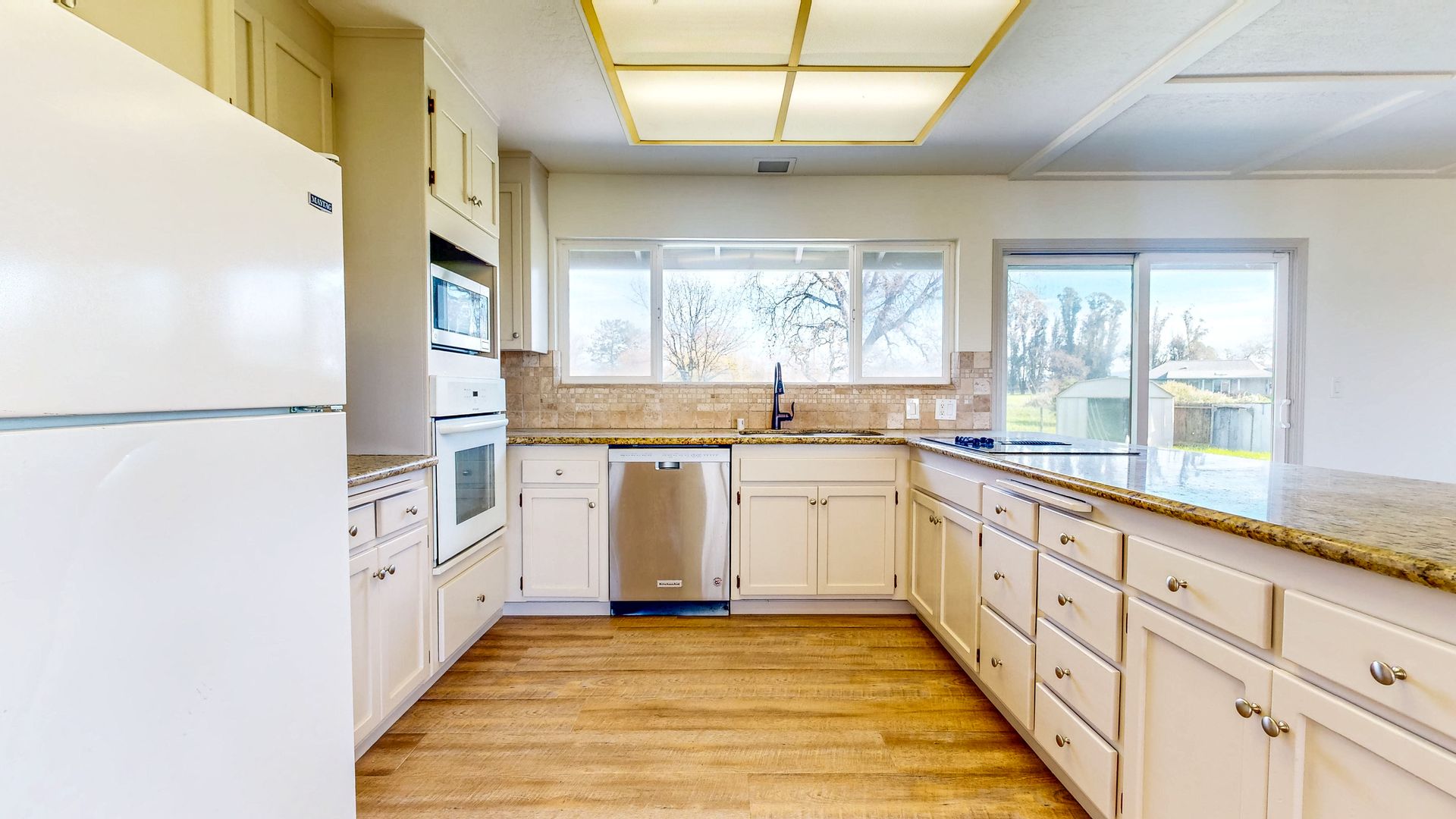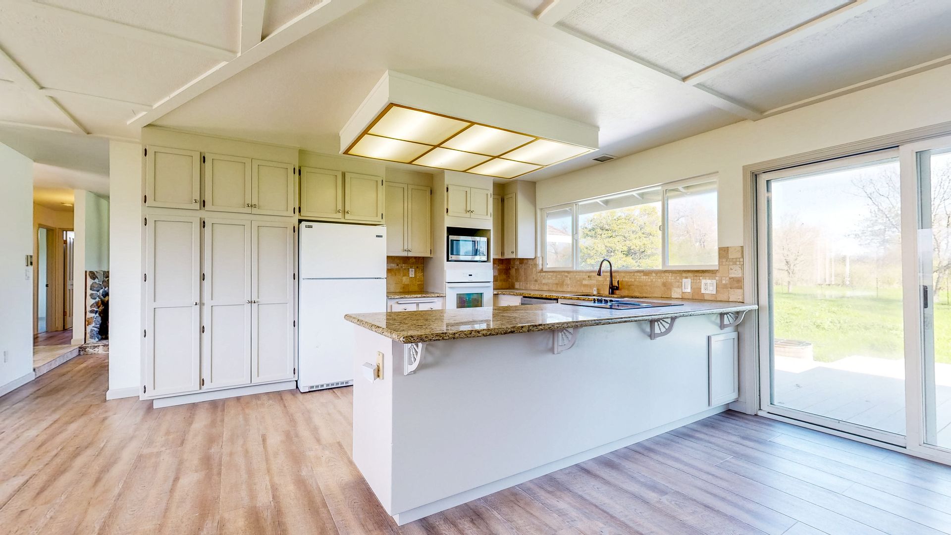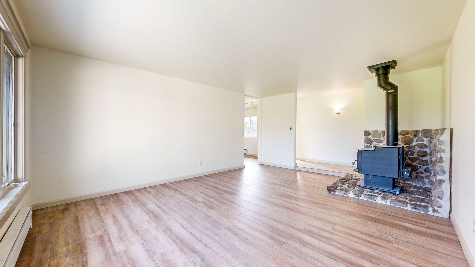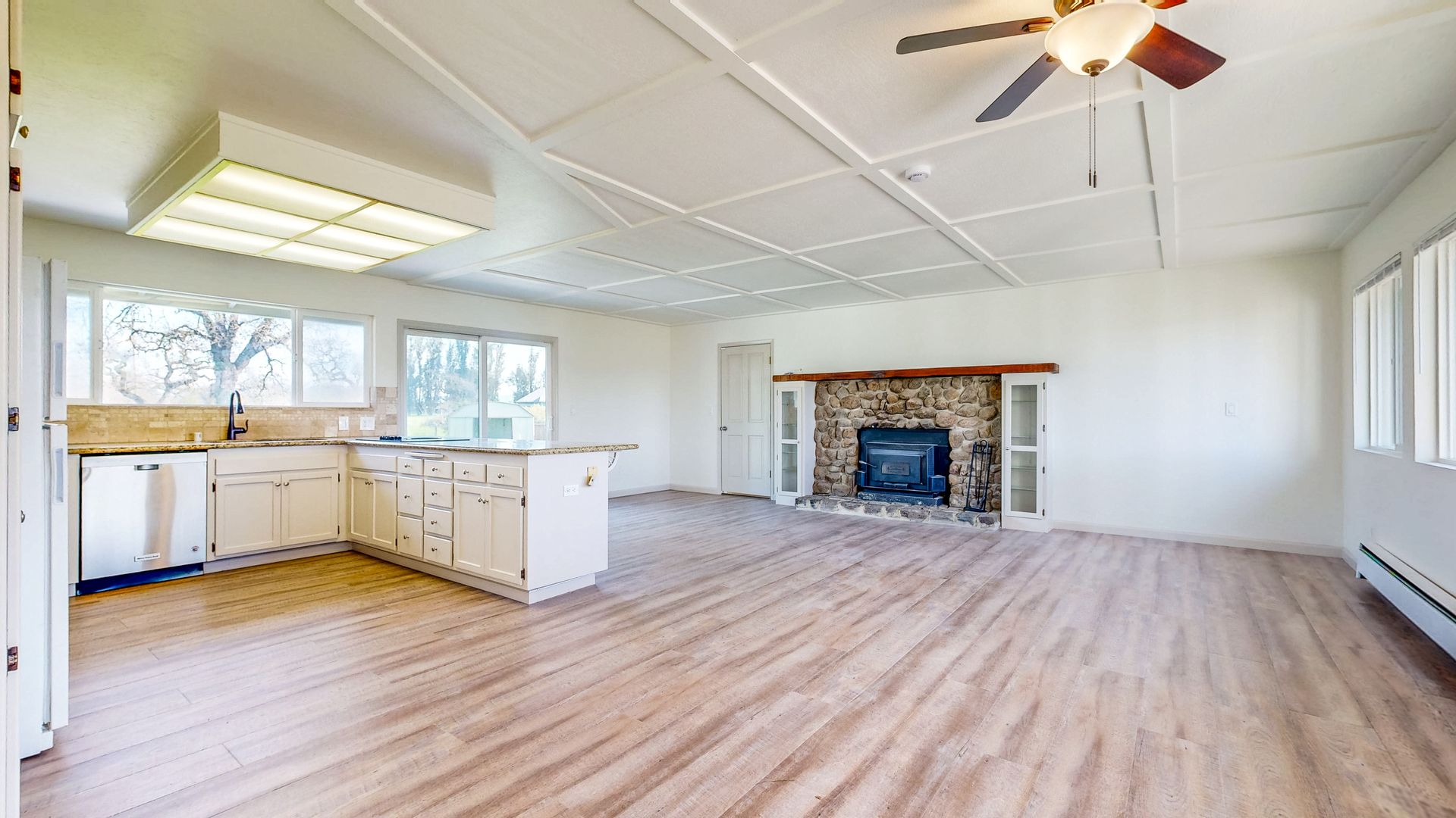 Beautiful Country Property! Three Bedroom 2 full bathroom with two living rooms or make one your formal dining area. Both spaces have wood burning fireplaces. New hard surface flooring throughout except bedrooms where there is new carpeting. Bright and spacious new paint throughout, new kitchen counter tops, & newly painted cabinets. Washer & dryer hookup in the garage. This property is perfect for entertaining or relaxing. Large yards. Spacious deck off the back of the house. Acreage for rent with additional cost including a barn! Come see all the possibilities!