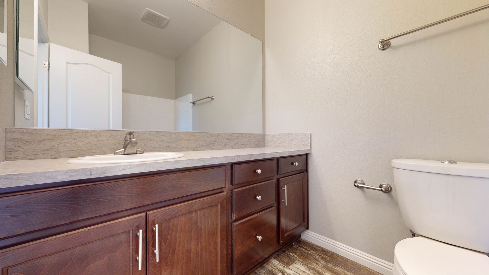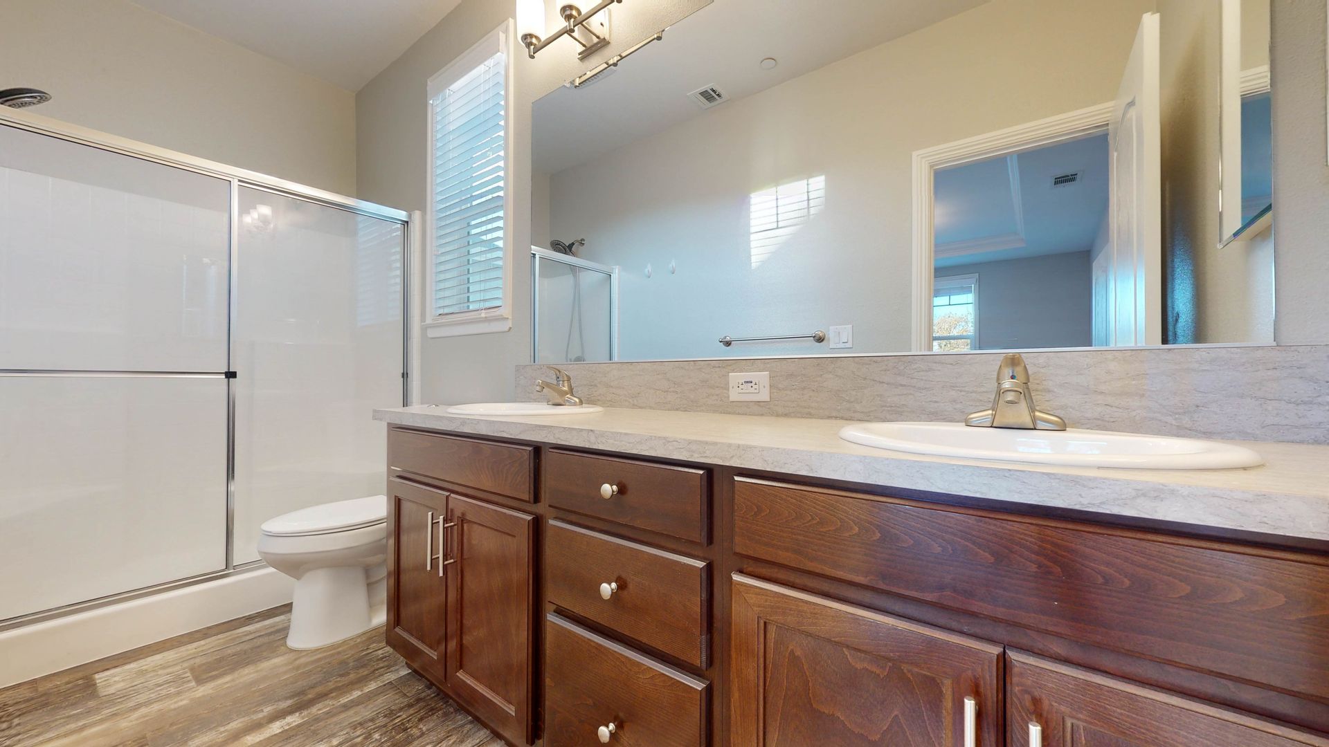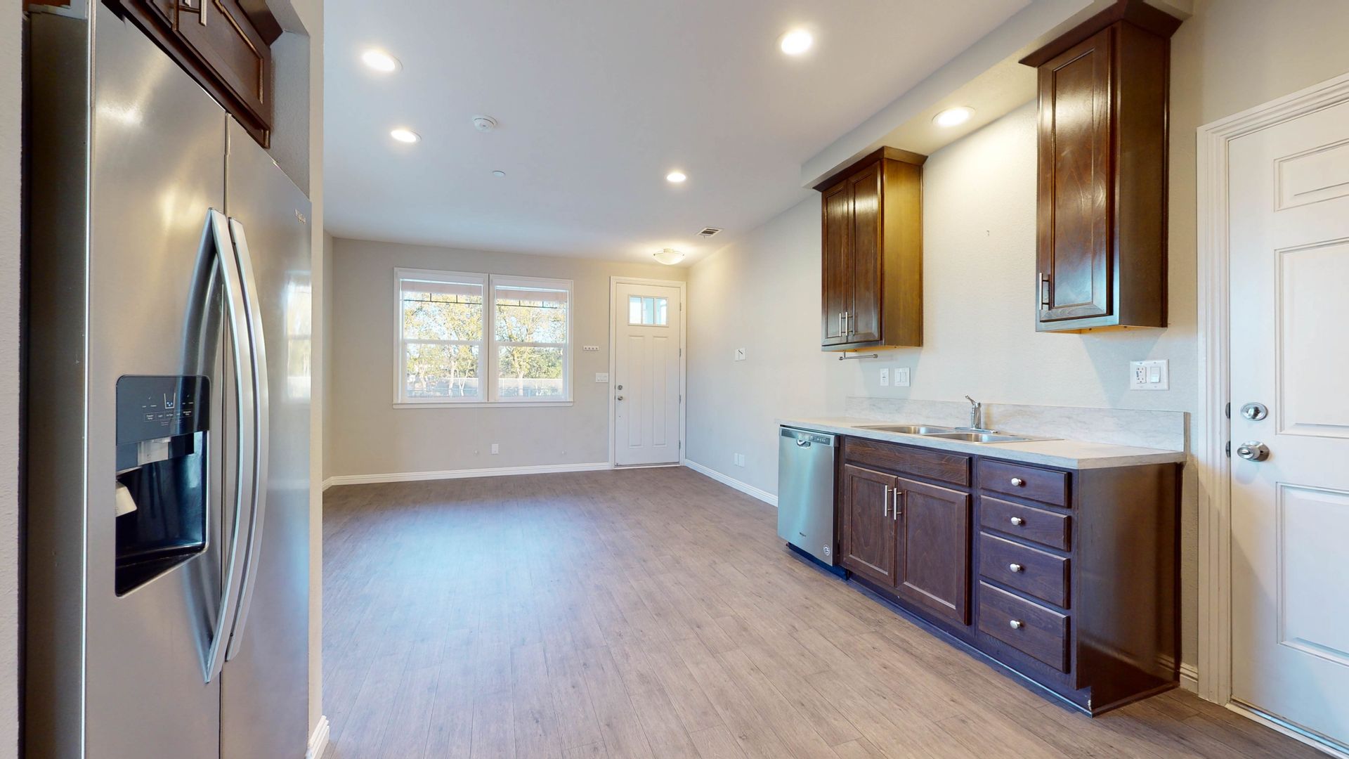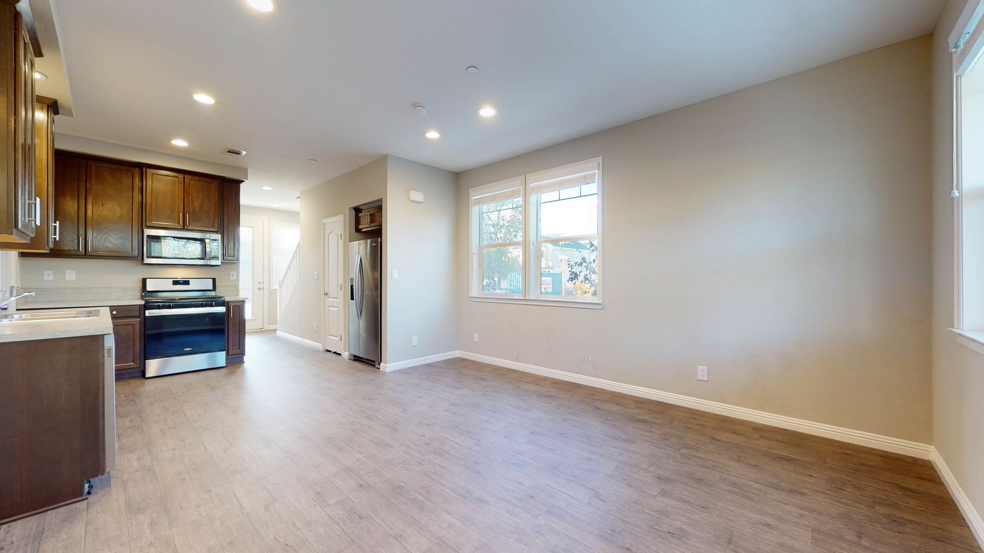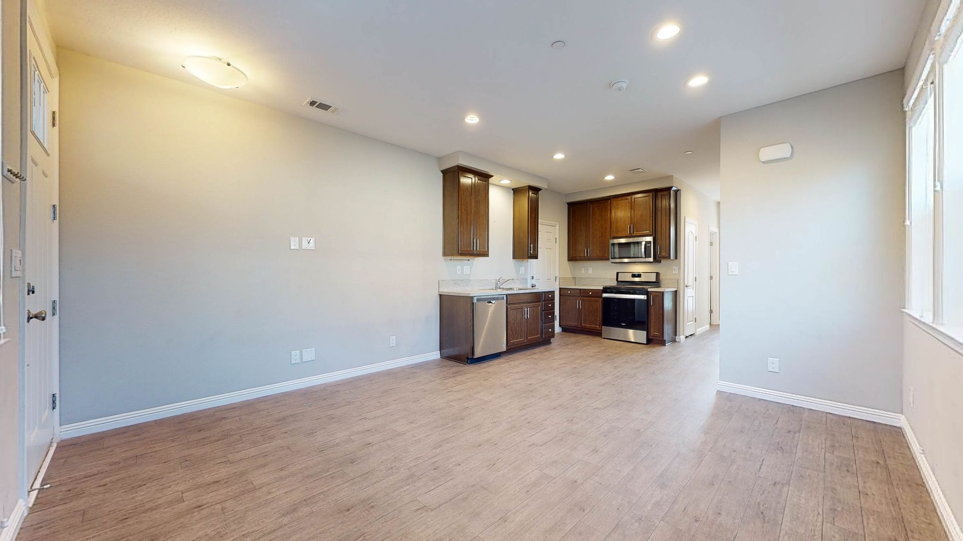 This beautiful 2 story home features solid flooring and carpet throughout. Open floor plan living/dining room connecting with kitchen downstairs and one full bathroom with shower tub combo. Kitchen features stainless steel appliances such as Gas Stove, Built in Microwave, Dishwasher and Refrigerator. All 3 bedrooms and 2 full bathrooms are located upstairs. Guest bathroom has shower tub combo and primary bathroom has a walk in shower as well as dual sink countertops. One oversized car garage with Washer and Dryer included. Central Heat.