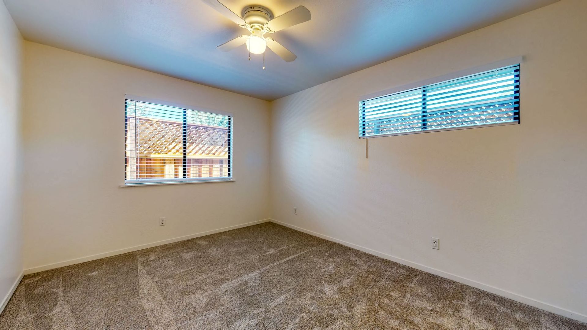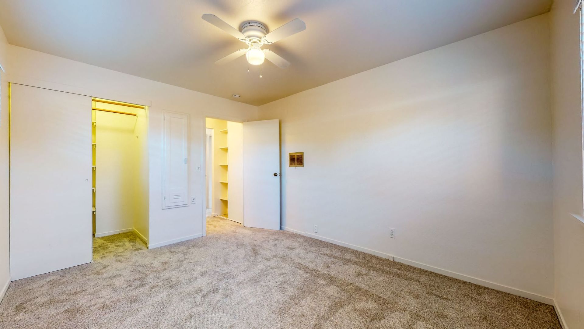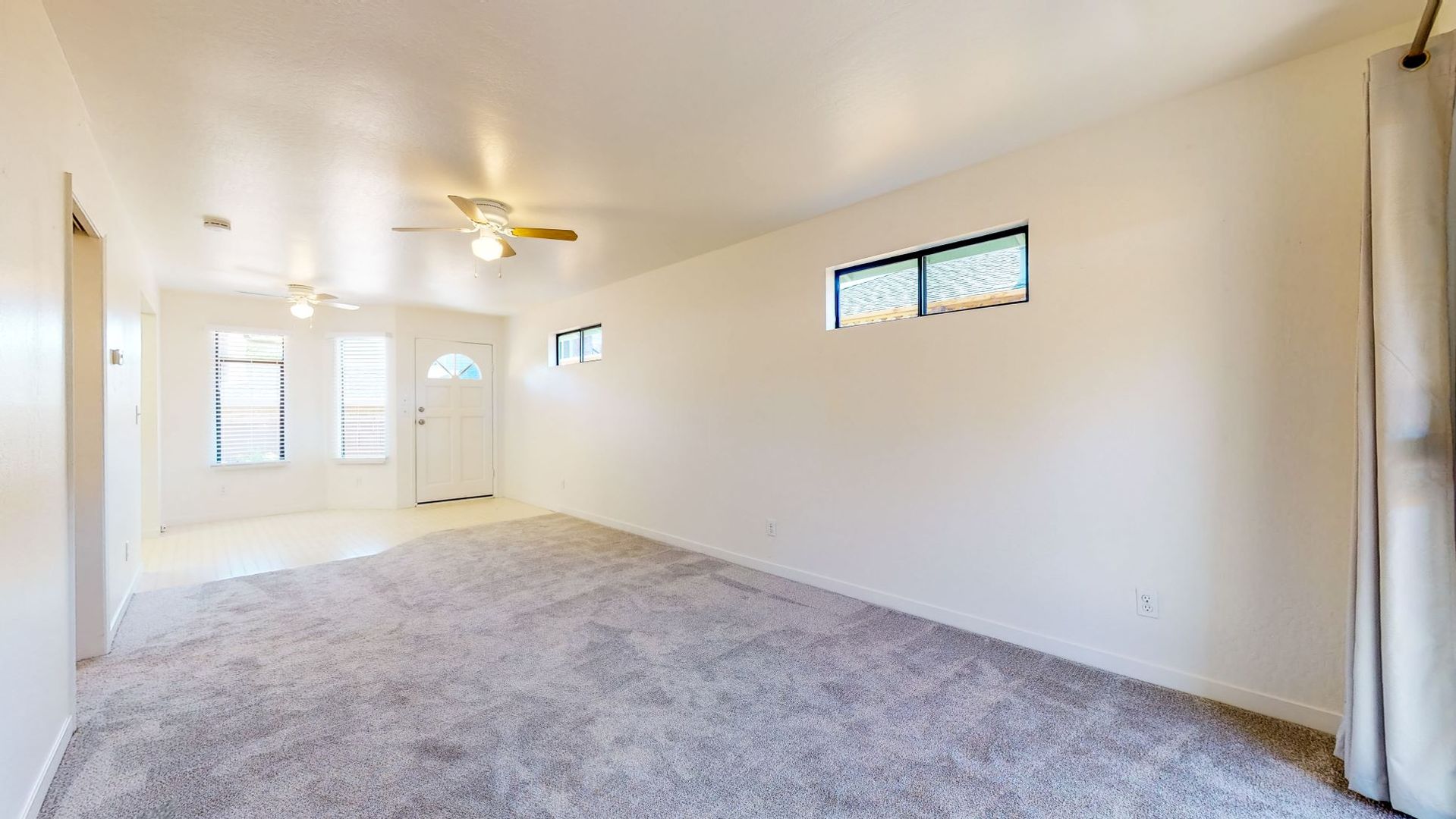 As you enter the property you are greeted by a spacious living room with plush carpet flooring that features a wall heater and ceiling fan. There is also a sliding glass door that leads out to a private deck. Kitchen has a Gas Stove, Refrigerator, and Microwave. The bedroom is of ample size and features a walk-in closet and ceiling fan. Bathroom has a shower tub combo. Stacked Washer and Dryer in unit. Large private yard with many fruit trees!