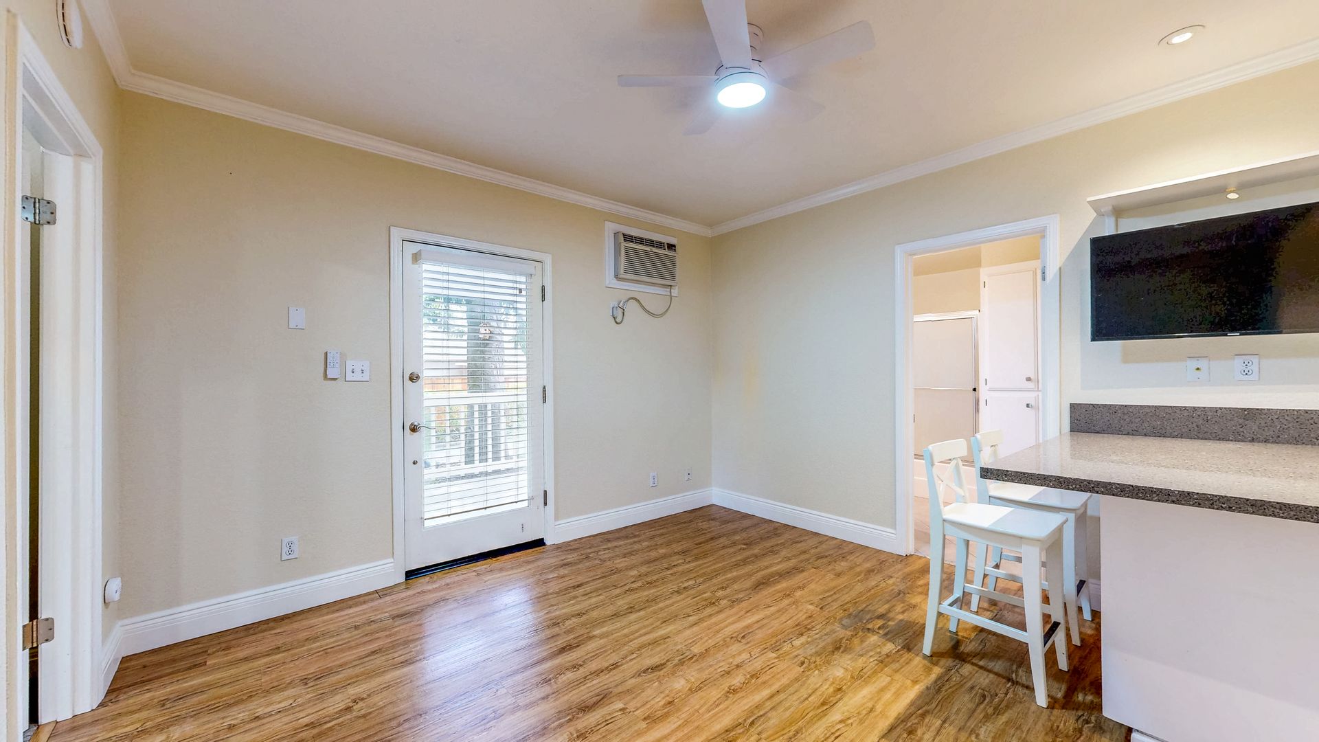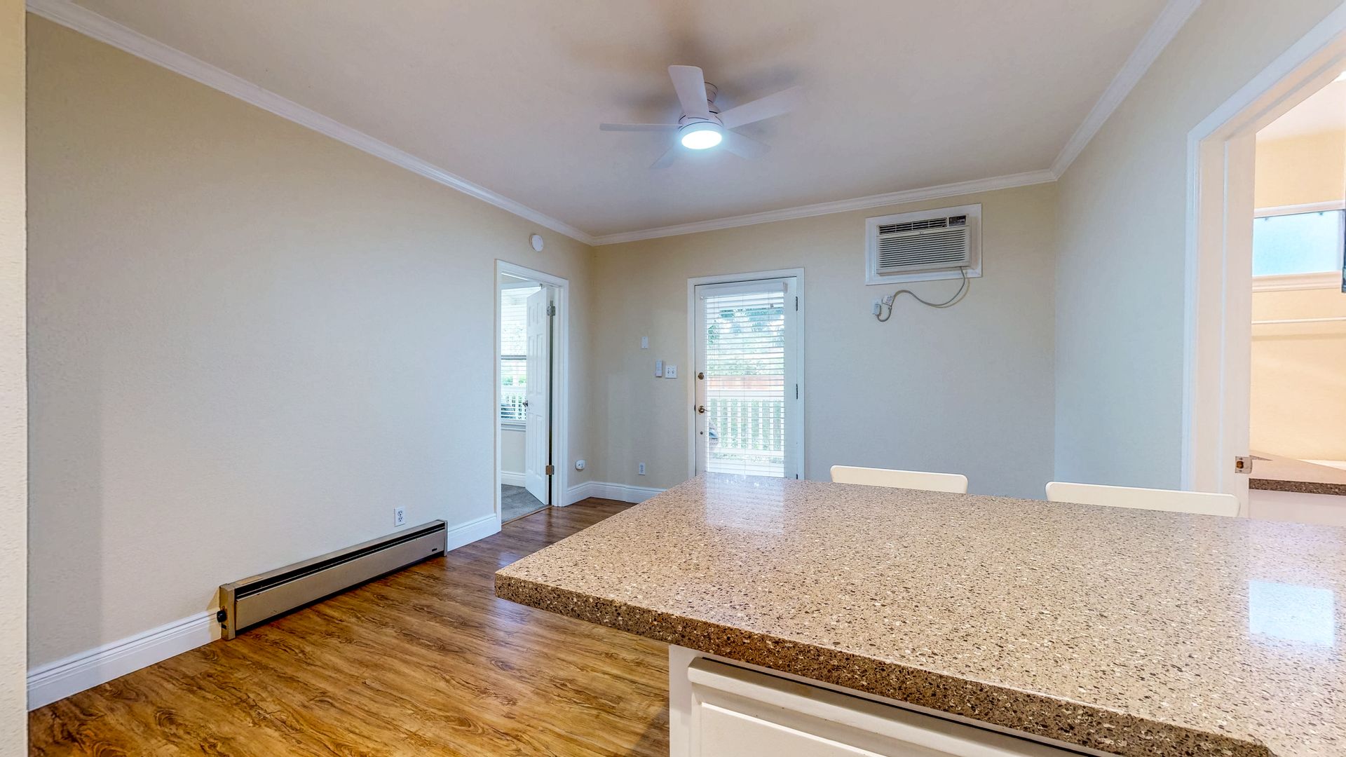 Welcome to this charming 1 bedroom, 1 bathroom downstairs apartment in beautiful St. Helena, just moments away from the vibrant downtown area. Conveniently located near local plazas, shops, and everyday essentials, this apartment offers a perfect blend of comfort and convenience. Nestled within a 7 unit community, residents enjoy access to on site coin operated laundry. Each unit also includes a private one car garage with its own locking storage area. As you approach the apartment , you'll be greeted by a designated patio space complete with outdoor furniture, creating a perfect spot to unwind and enjoy the fresh air. Step inside to a cozy, open concept layout where the living room and kitchen connect seamlessly, enhanced by a breakfast bar for casual dining. The living area also includes a TV, making it a comfortable space to relax or entertain. The kitchen is fully equipped with a dishwasher, microwave, electric stove, and refrigerator. Just off the living area, the bathroom features a shower and tub combination along with additional cabinet storage. The bedroom, located on the opposite side for added privacy, includes its own TV and mirrored sliding closet doors. Additional highlights include solid surface flooring throughout, carpet in the bedroom for added comfort, an A.C. unit, and baseboard heating to keep you comfortable year round. Water, Sewer , and garbage included. 12 month lease. No Pets allowed. ESA and service animals welcome. (ST) (EE)