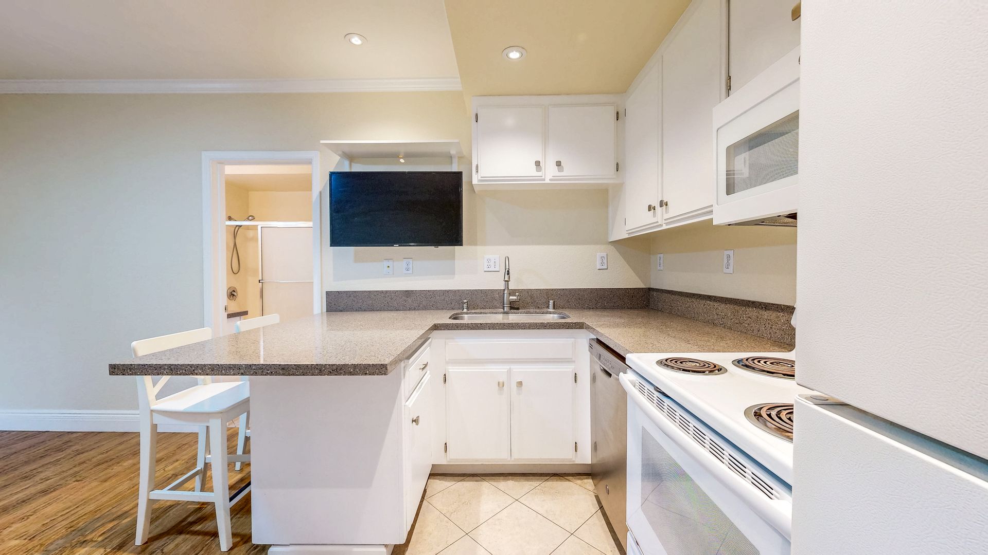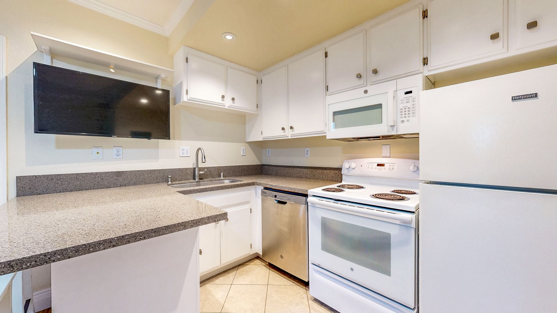 -Dishwasher, electric stove, refrigerator, and microwave included