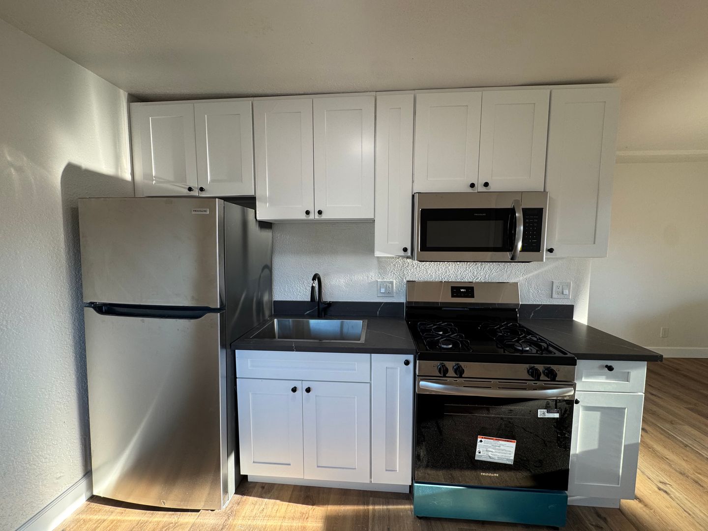 This recently renovated unit features brand new Luxury LVT Flooring. As you enter the property you are greeted by a spacious Living room. The Kitchen features new cabinets and Stainless Steel Appliances such as a Refrigerator, Gas Oven, and Built-in Microwave. The bathroom has a tub/shower combo. Both bedrooms are of ample size and feature ceiling fans. The bedroom adjacent to the bathroom features a bonus room or area that can be used as a walk-in closet. The unit also features a covered carport next to the unit for parking.
