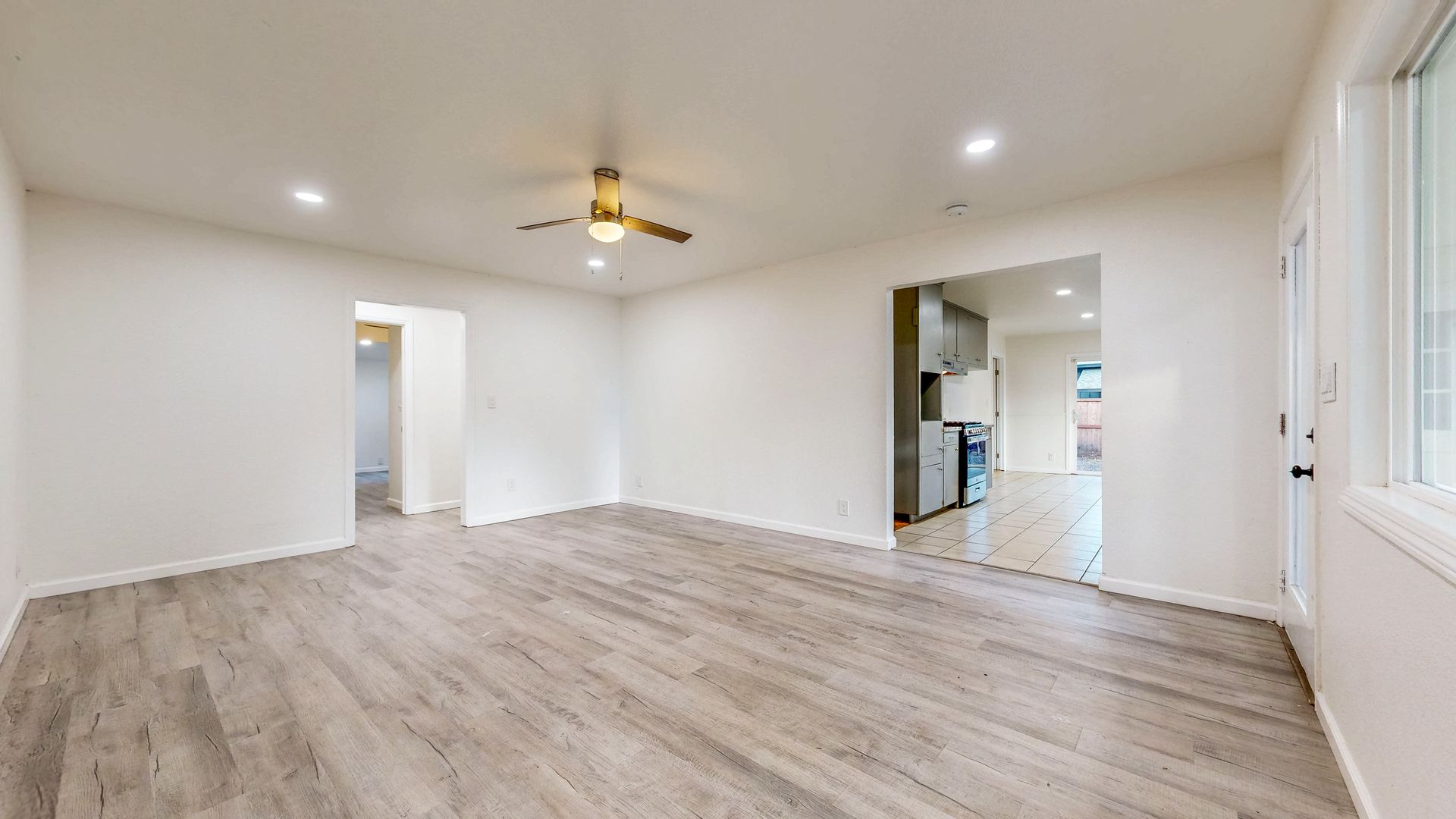 Welcome to your new home! This five bedroom, 1 bathroom singles level home is a must see. Hard surface floors throughout, mixture of tile and hardwood. Stackable washer & dryer hook up in kitchen. Large yard is perfect for your visions. Detached carport and lots of extra parking. Front door located in the backyard for privacy.