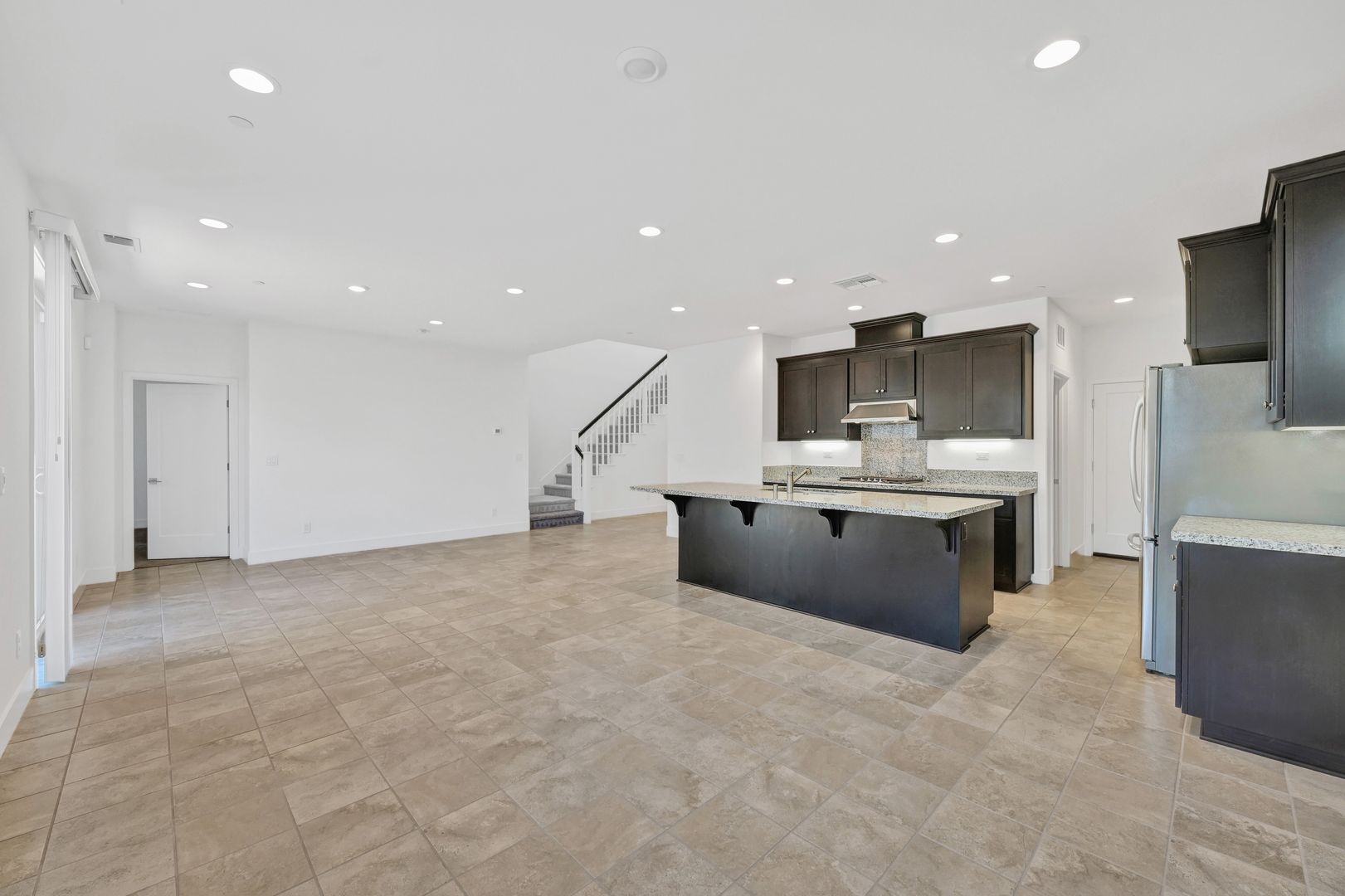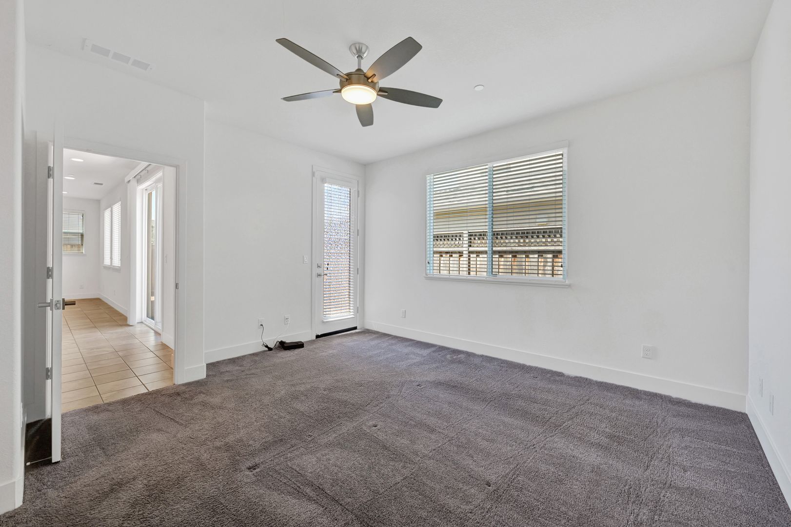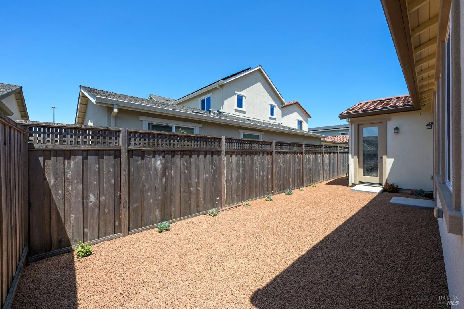 As you enter the main home of 3 Bedrooms and 2.5 Bathrooms you are greeted by a Spacious Open concept Dining room and Living Room area that features beautiful tile flooring and high vaulted ceilings. The Kitchen features beautiful marble counter tops and and Stainless Steel Appliances such as Gas Cooktop, Refrigerator, Built-in Microwave, Dishwasher, and a Built-in Wall Oven. The Kitchen also features additional Bar seating. A Spacious Primary Bedroom with a large walk-in closest, ceiling fan, plush carpet flooring and access to the enclosed back/side yard will also be located downstairs. The Primary Bathroom features a Dual Vanity, Bathtub and a Walk-in Shower. Downstairs near the entrance you will find a Bonus Room that can be used as an Office Space or left to your imagination, a half bathroom will also be located across the hall. A Laundry Room with a stacked Washer/Dryer included is located adjacent to the Two car garage.