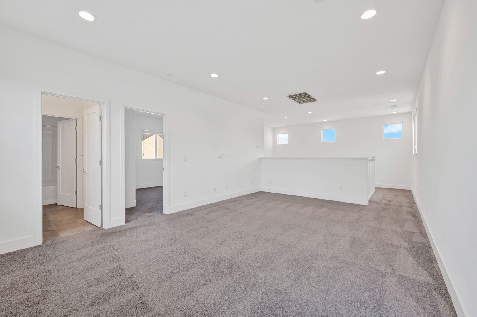 As you reach the second level of the home you will find a Second Large Living Room space. Two guest bedrooms are located upstairs and feature plush carpet flooring. The Guest Bathroom features a Dual vanity and a Tub/Shower combo.